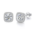 Captivating square Moissanite earrings, sized at 7mm*7mm, main gem surrounded with minuscule Moissanite bits exude contemporary charm with their brilliant shine, making them a stunning choice to enhance your elegance and fashion-forward style.